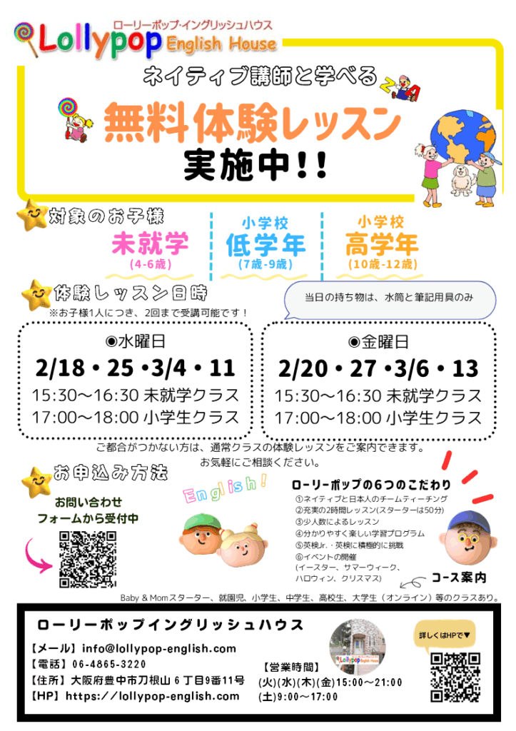 ぜひ、お子様の楽しい学びのために、ローリーポップイングリッシュハウスをご検討ください。